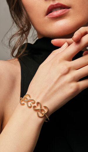 Bracciale Stefanoss' sign, oro giallo 750/1000. Larghezza dei due motivi 23 mm.